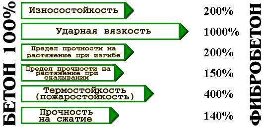 Фибробетон выгодно отличается от традиционного бетона, имея в несколько раз более высокие по сравнению с ним: