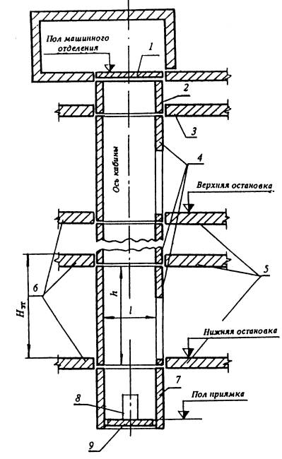 1.1. Конструкции шахт лифтов в зависимости от назначения и расположения по высоте шахты (черт. 1) подразделяются на следующие типы: