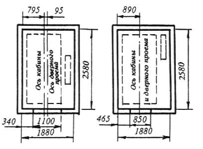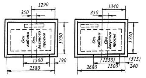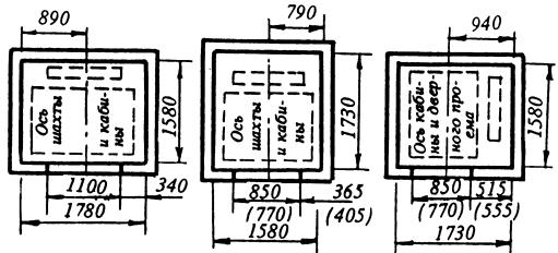1.2. Конструкции шахт лифтов (за исключением тумб) в зависимости от расположения противовеса по отношению к кабине лифта изготовляют в двух исполнениях: противовес сзади кабины, противовес справа кабины.