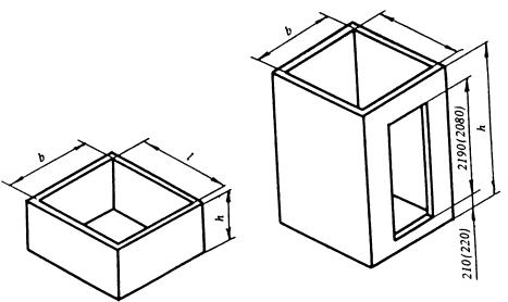 Толщина стенок блоков устанавливается рабочими чертежами на эти блоки. Конструкция плит приямка устанавливается рабочими чертежами конкретных зданий с учетом обязательного опирания этих плит на конструкции нулевого цикла. Допускается устройство плит приямка из монолитного железобетона одновременно с возведением конструкций нулевого цикла, а также предусматривать плиту приямка, объединенную с нижним блоком. В зависимости от принятой конструкции приямка высоту нижнего блока шахт лифтов со скоростью движения 1, 6 м/с, указанную в табл. 1, 1а, 1б, допускается изменять.