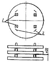 опорные кольца и плиты - не более чем в шесть рядов по высоте на прокладках (подкладках) в соответствии со схемой, приведенной на черт. 2.